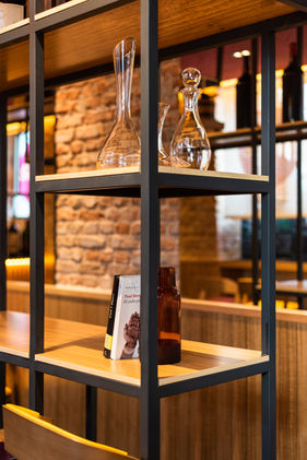 El segundo espacio es la tienda, Para organizar la gran cantidad de producto que hay en la tienda, tomamos la decisión de generar una gran retícula que contuviera las botellas para simplificar la búsqueda del producto.